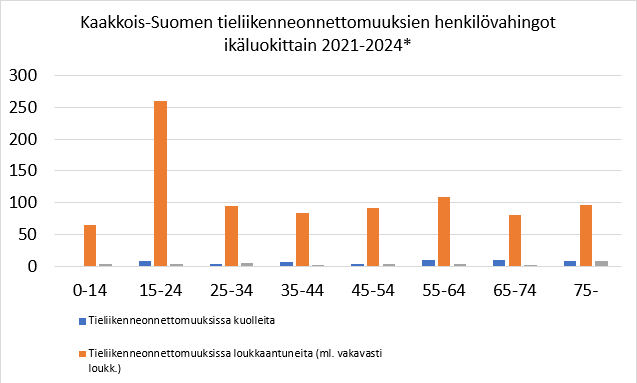 Nuorten liikenneonnettomuudet ovat iso huolenaihe ympäri Suomen, myös Kaakkois-Suomessa. Kaakkois-Suomessa on loukkaantunut yli 250 nuorta tieliikenneonnettomuuksissa vuosina 2021-2024. Muissa ikäryhmissä loukkaantuneiden määrä on sadan molemmin puolin, eli huomattavasti vähemmän. Nuoria kuljettajia on myös menehtynyt onnettomuuksien seurauksena.